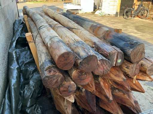 Bestaat uit: verpakking Robinia palen, geschild en gepunt, kopdiameter 160-180mm, lengte 5000mm., 25 stuks.
