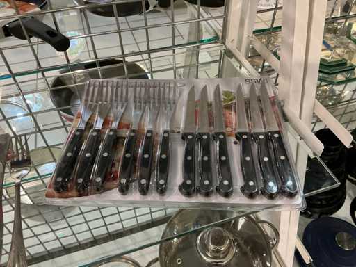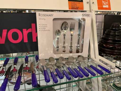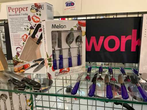 Waaronder messeblok PEPPER, 24 delig bestekset voor 6 personen ROSEMARY, MELON, 30 delig bestekset voor 6 personen RUCOLA, 12 delig steakset