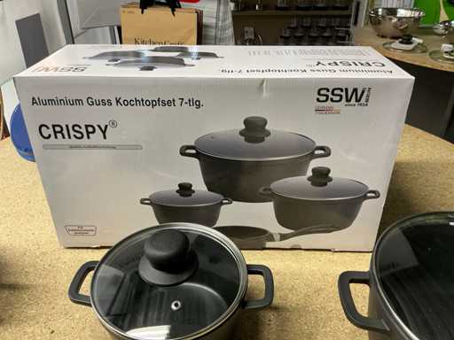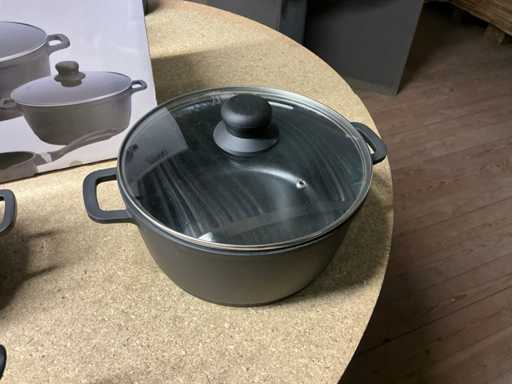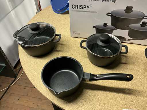 7 delig kookpotset alugus antikleef met 3 x ronde kookpot met deksel diverse diameters en 1 x steelpan
