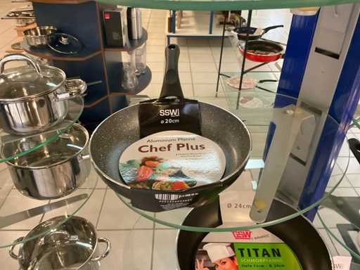 Ssw/Gsw Diverse pannen (6x), 2 x glazen deksel , 4 x sauspannetje met verwarmer