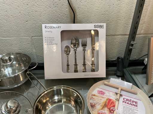 Ssw/Gsw inox kookpotset met 24 delig bestek en flensjespan