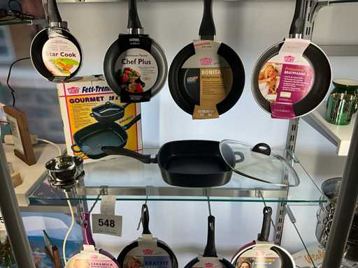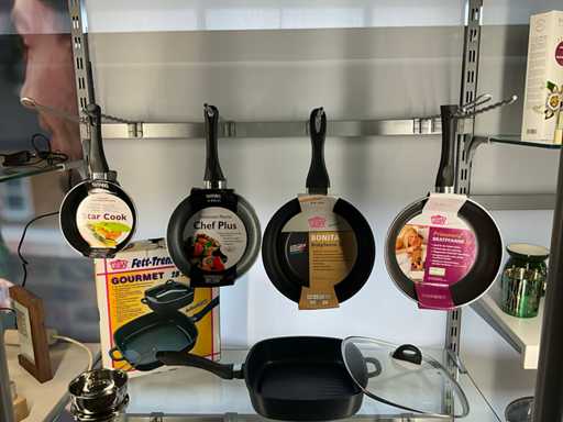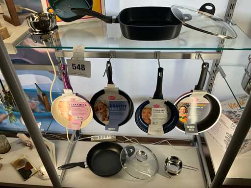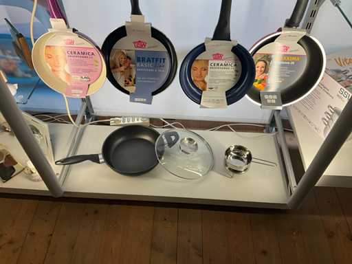 8 x braadpan antikleef diverse grootes 20,24 en 28cm, 2 x sauteerpan met deksel 28 cm, 2 x sauskommetjes met warmer
