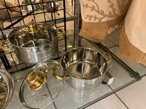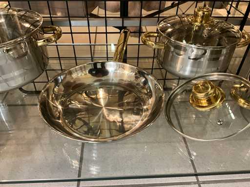 7 delig kookpotset bestaande uit 3 kookpotten met deksel diameters 16-20 en 24 cm en 1 x braadpan 24 cm - deksel kookpot 24 cm past op braadpan