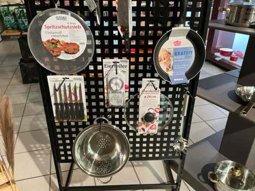 Waaronder braadpan, vergiet, scharen, diverse messen, antispatdeksels, eisnijder, zonder tek