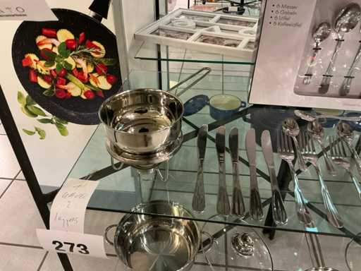 Waaronder 5 diverse kookpotten en sauspotjes met warmer, compleet met divers 24 delig bestek voor 6 personen ROSEMARY