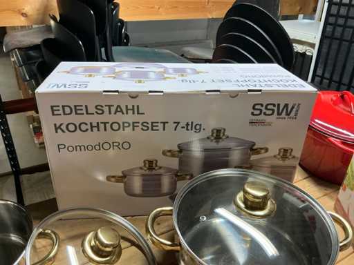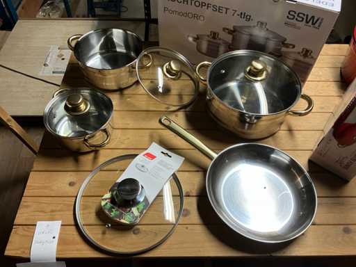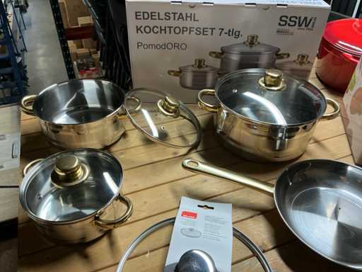 3 x inox kookpot rond met deksel in diverse diameters 16 , 20 en 24 cm en 1 x inox braadpan 24 cm
