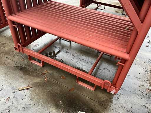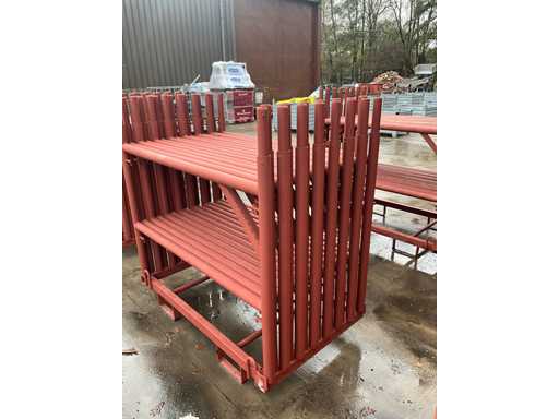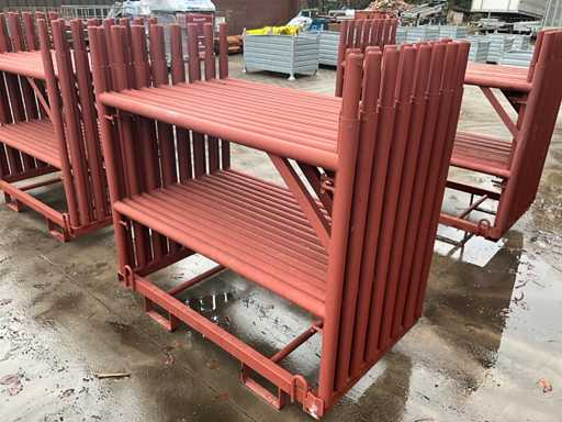 Metalen staanders zo goed als nieuw, elk met afmeting 130 x 115 cm hoog op bijhorende stapelbok.