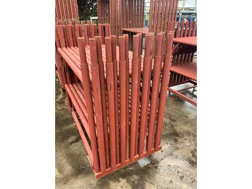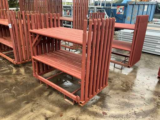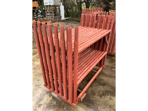 Metalen staanders, elk met afmeting 130 x 115 cm hoog op bijhorende stapelbok.