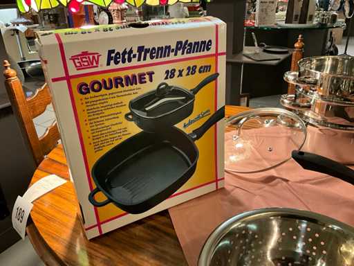 Stoompotset en fett weg pan, messenblok en divers keukengerei en bestek