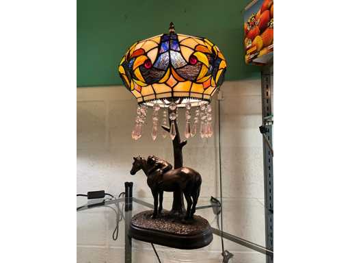 zonder ampoule - met parels aan kap en ruiter te paard als lampvoet