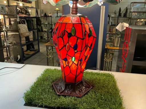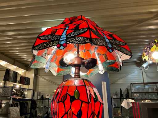 TIFFANY Tafellamp met licht in voet en parels-dragonfly decoratie