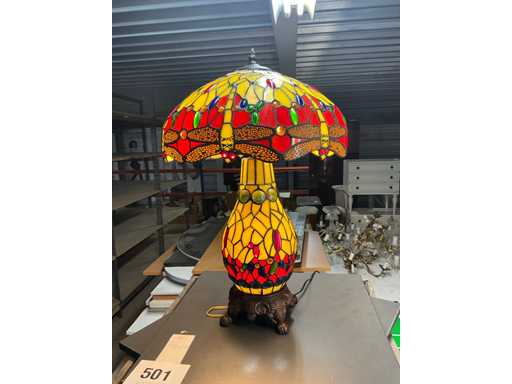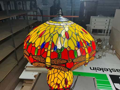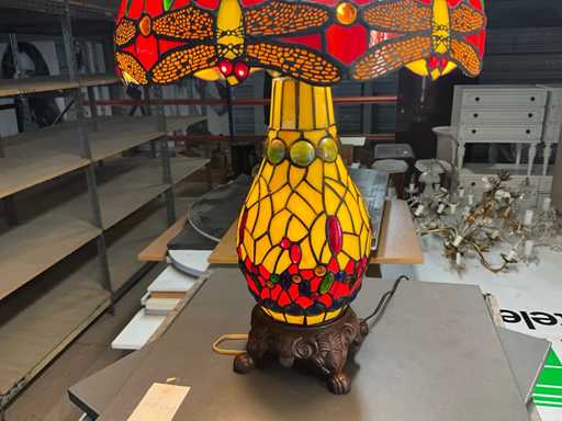Tiffany Tafellamp met verlichte voet dragonfly decor met parels