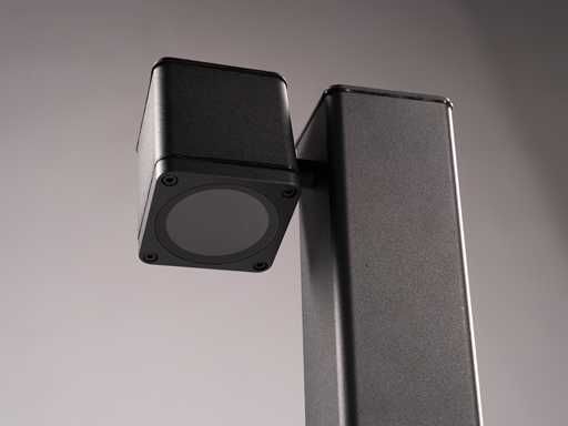 IP54 afdichting, afm. 160 x 100 x 500mm, materiaal aluminum en glas diffuser, bevestiging inclusief, GU10 fitting, bulb niet inbegrepen, geschikt voor buiten, een bulb invoer, voltage 220-240V, max 35 watt, kubus draait rechts links, Staande buitenlamp, SKU 00702
