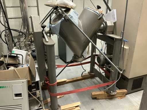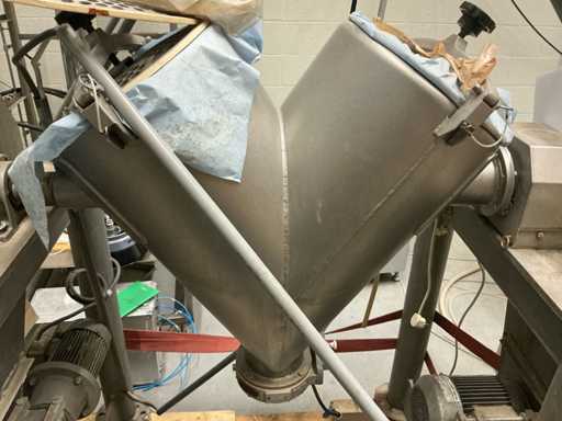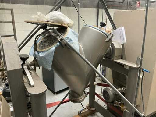 RVS industriële V-menger voor het homogeen mengen van poeders en granulaten.