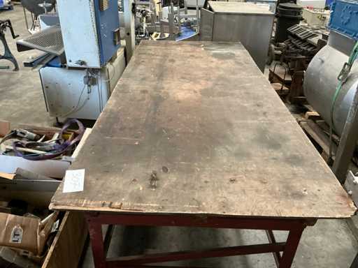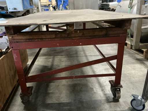 Voorzien van houten bovenblad en metalen verrijdbaar onderstel