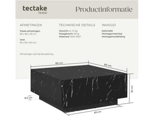 Totale afmetingen (B x D x H): ca. 80 x 80 x 35 cm / 31,1 x 3