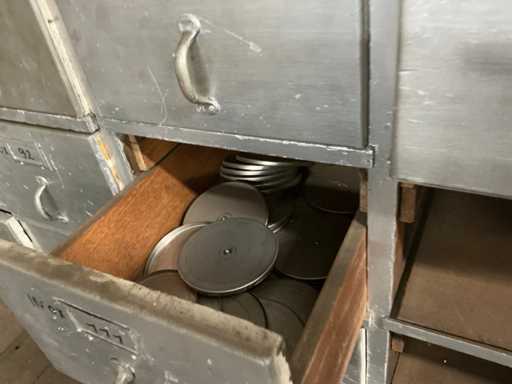 Inclusief: 2 diverse Galva bijzettafels, 1 halffabricaat en partij inox schijven