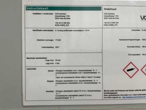 - Sandwichpanelen wand, circa 12m, H295cm 2). - Vos Technics koelinstallatie in 40ft-zeecontainer
