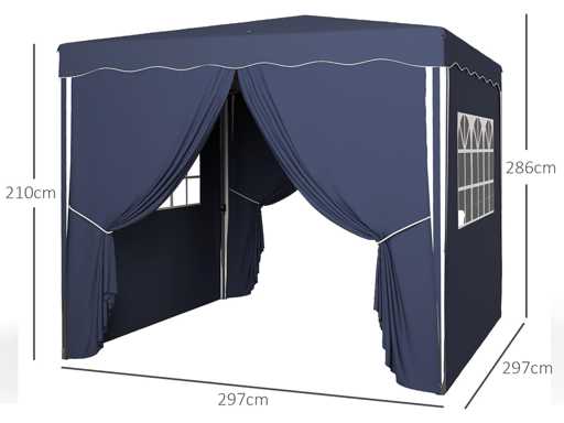 Totale afmetingen: 297 x 297 x 286 cm (L x B x H)