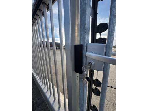 De poort sluit tegen een draaipoort van 5,00m. Hierdoor is de doorgang 17,00m.