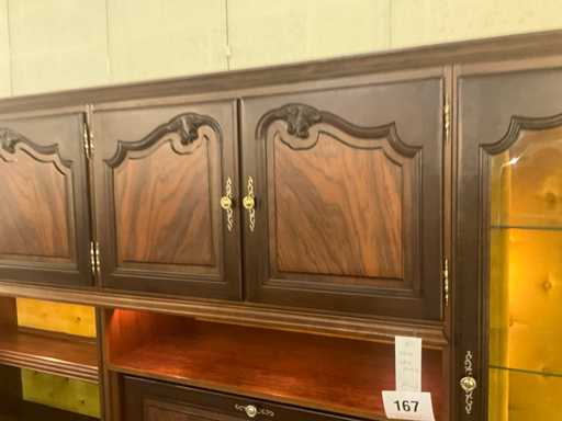 Voorzien van 17 deuren waaronder 1x in glas, 4 schuiven- wandmeubel in kerselaar-past eventueel samen met kavel 188