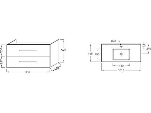 Wastafelmeubel 100 cm - 2 laden, chromen handvat, EB2306