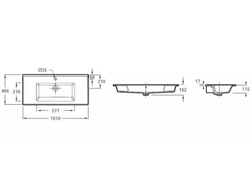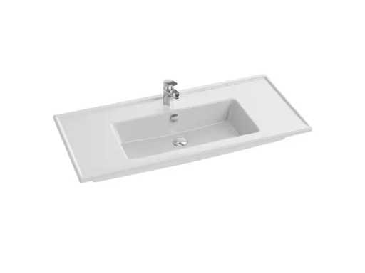 EXBP112-Z-00 Geslepen keramische wasbak, te installeren op meubels. W101 x D46,6 cm. Niet-zelfstandig. Afgeleverd zonder afvoer. Ik heb één gat geboord. Wordt geleverd met overloopdekking. Zonder bijbehorend meubilair