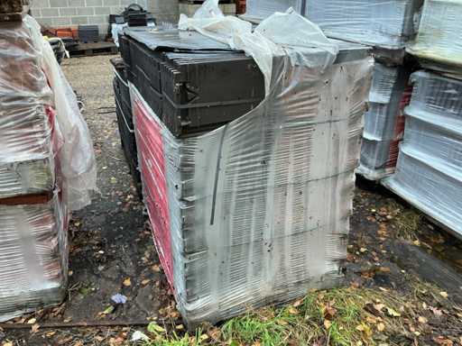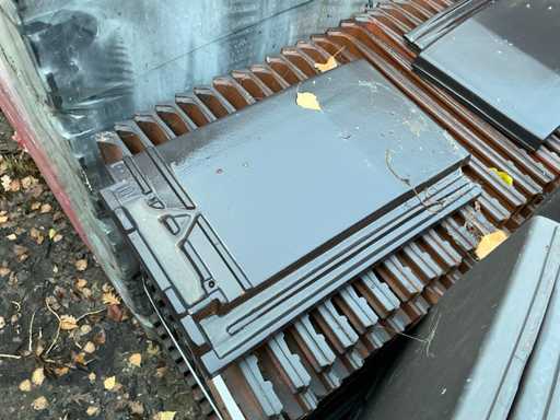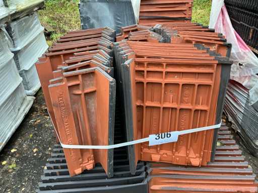 Diverse linkse en rechtse gevelpannen, liggende op 2 palletten